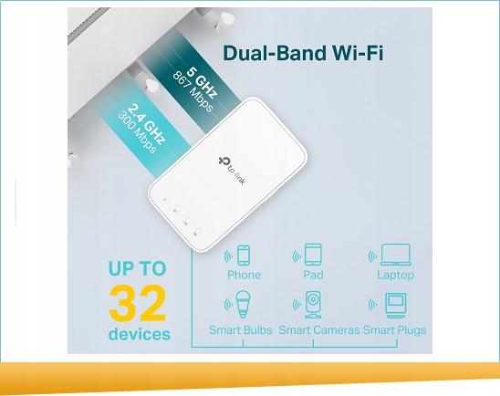 - Działa w paśmie 2,4 GHz (do 300Mb/s) i 5 GHz (do 867Mb/s), oferując stabilniejsze połączenia bezprzewodowe.†